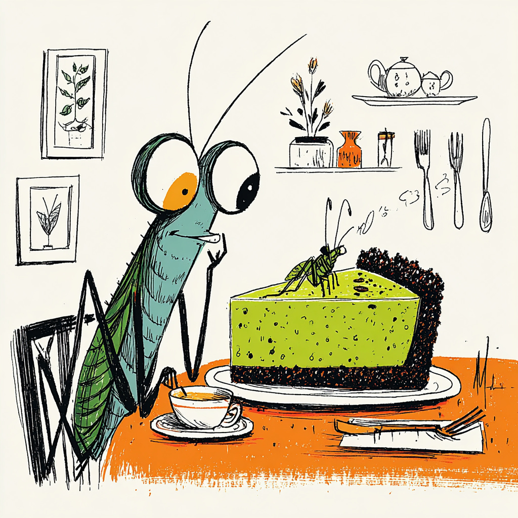 In a world where bugs might grace a plate, Here’s a dish with a twist of fate. A pie named grasshopper, green and sweet, With nary an insect inside to meet.