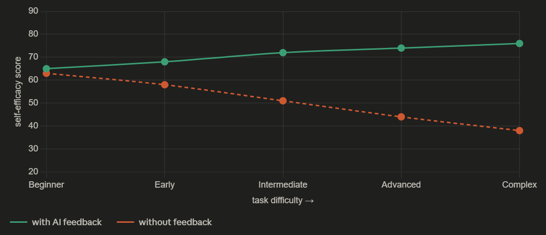 Translated: the student who gets immediate, specific feedback on whether she is playing the right note is more likely to believe she can eventually play the right note than the student who gets no feedback at all. This is not a surprising finding. It is a precise description of what it feels like to be seen versus to be invisible.